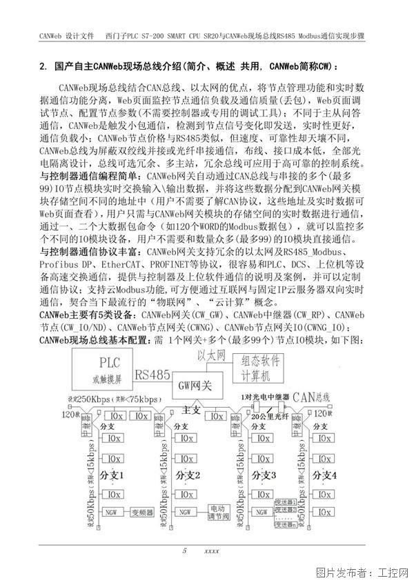 主要包括 概述、 國產自主CANWeb現場總線介紹、 PLC與GW網關模塊的硬件接線、GW網關模塊的連接設置、S7-200SMART 的程序說明、程序例程等內容,可供編程參考。